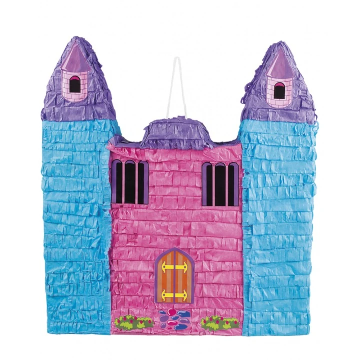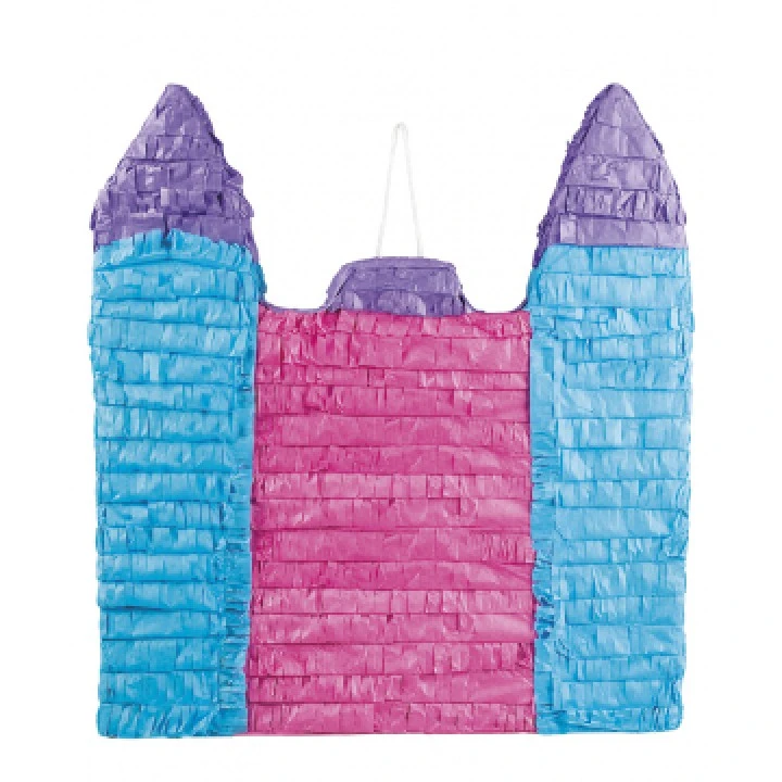 Cette Pinata Château 40 x 55 cm sera l’animation parfaite pour la prochaine fête, goûter d’anniversaire de votre enfant, thème Princesse. Cette Pinata est idéale pour organiser une chasse aux trésors et y cacher plein de surprises. Cette Pinata château en carton, a la forme d’un château à crénelage avec deux tours, des fenêtres et une porte en papier crépon rose, violet et turquoise. La pinata se suspend par un petit crochet en plastique situé sur le haut de la pinata. Celle-ci se remplit de petits cadeaux, de bonbons par un orifice discret recouvert de papier. C’est un véritable jeu et un moment important du goûter danniversaire : les enfants peuvent ouvrir la pinata, soit en tirant sur les ficelles de raphia qui pendent sous la pinata, soit à l’aide d’un bâton à pinata et les yeux masqués par un cache-il pour pinata ou non, selon l’âge des enfants, que nous vendons également. En choisissant cette Pinata Château 40 x 55 cm, à coup sûr, votre enfant sera ravi ainsi que tous les petits amis qui l’accompagneront qui ramèneront chacun un joli petit cadeau après s’être bien amusés.