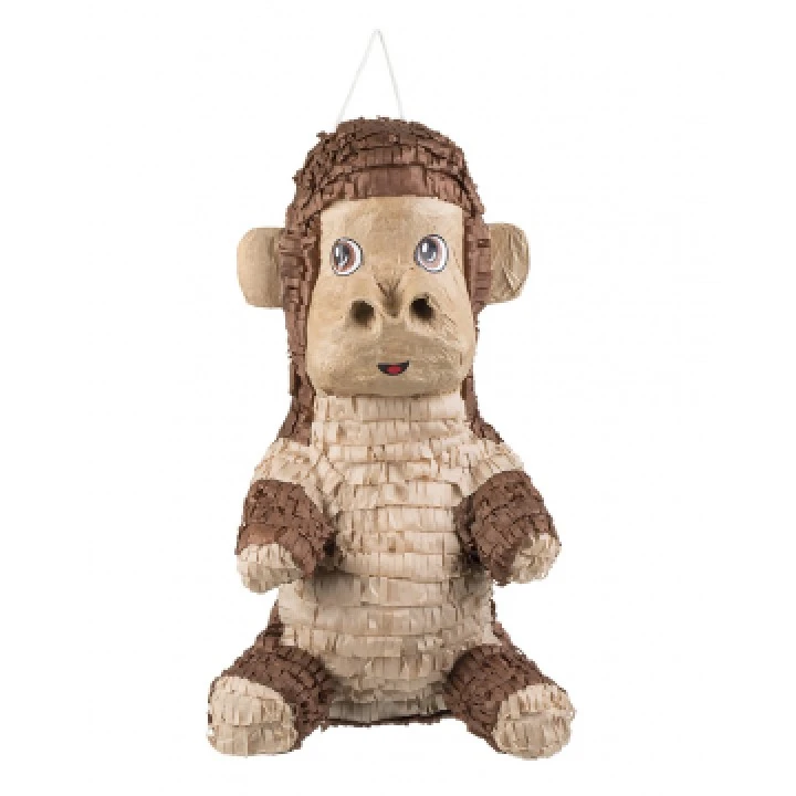 Cette Pinata Singe 56 x 43 cm sera l’animation parfaite pour la prochaine fête, goûter d’anniversaire de votre enfant thème Tropical. Cette Pinata est idéale pour organiser une chasse aux trésors et y cacher plein de surprises. Cette Pinata singe en carton, a la forme d’un joli singe assis et très expressif en papier crépon beige et marron clair. La pinata se suspend par un petit crochet en plastique situé sur le haut de la pinata. Celle-ci se remplit de petits cadeaux, de bonbons par un orifice discret recouvert de papier. C’est un véritable jeu et un moment important du goûter danniversaire : les enfants peuvent ouvrir la pinata, soit en tirant sur les ficelles de raphia qui pendent sous la pinata, soit à l’aide d’un bâton à pinata et les yeux masqués par un cache-il pour pinata ou non, selon l’âge des enfants, que nous vendons également. En choisissant cette Pinata Singe 56 x 43 cm, à coup sûr, votre enfant sera ravi ainsi que tous les petits amis qui l’accompagneront qui ramèneront chacun un joli petit cadeau après s’être bien amusés.